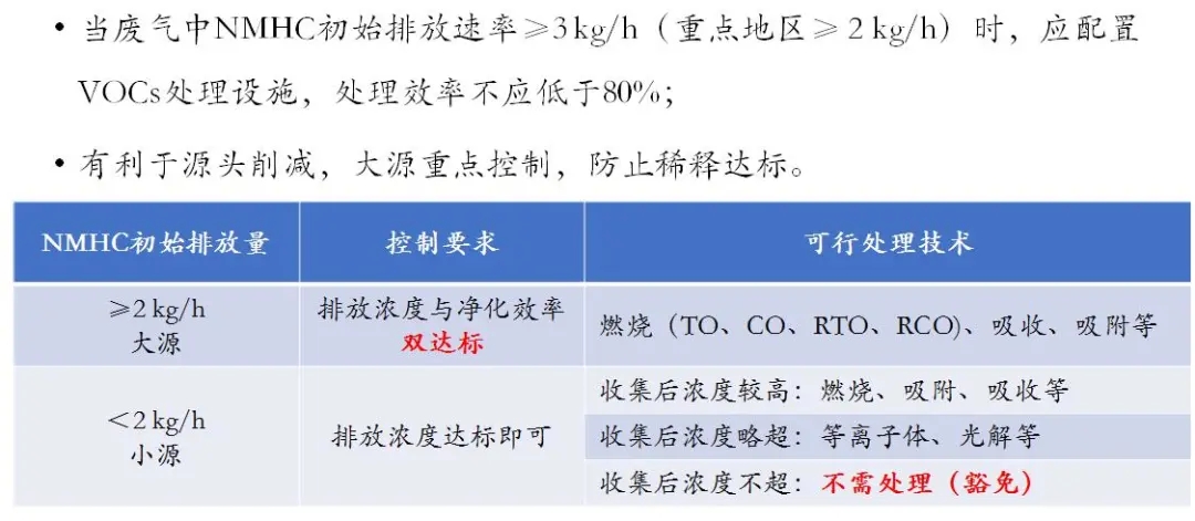 VOCs去除處理:收集的廢氣中NMHC初始排放速率<2 kg/h時,收集后濃度不超可豁免VOCs處理,濃度達(dá)標(biāo)即可。
